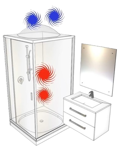 Without using a Bath Dome, the cold air mixes with the hot moist air that rises from within your shower, which is how condensation and steam is created in the first place.